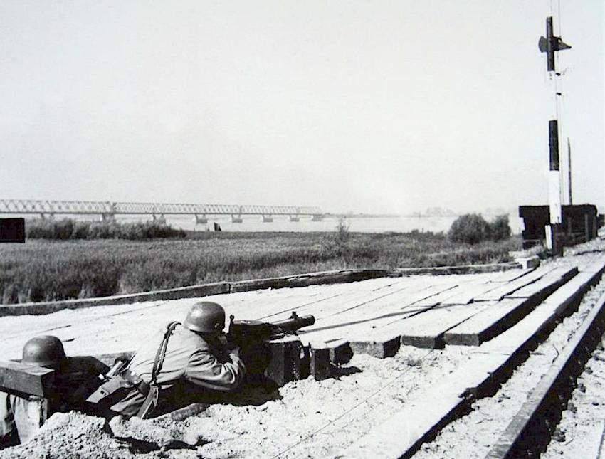 Als laatste foto een die van het internet komt en past bij de laatste serie foto's van Moerdijk. Deze foto laat Duitse para's zien die een buitgemaakte Nederlandse Lewis M.20 mitrailleur in gebruik hebben genomen bij de Moerdijk spoorbrug.