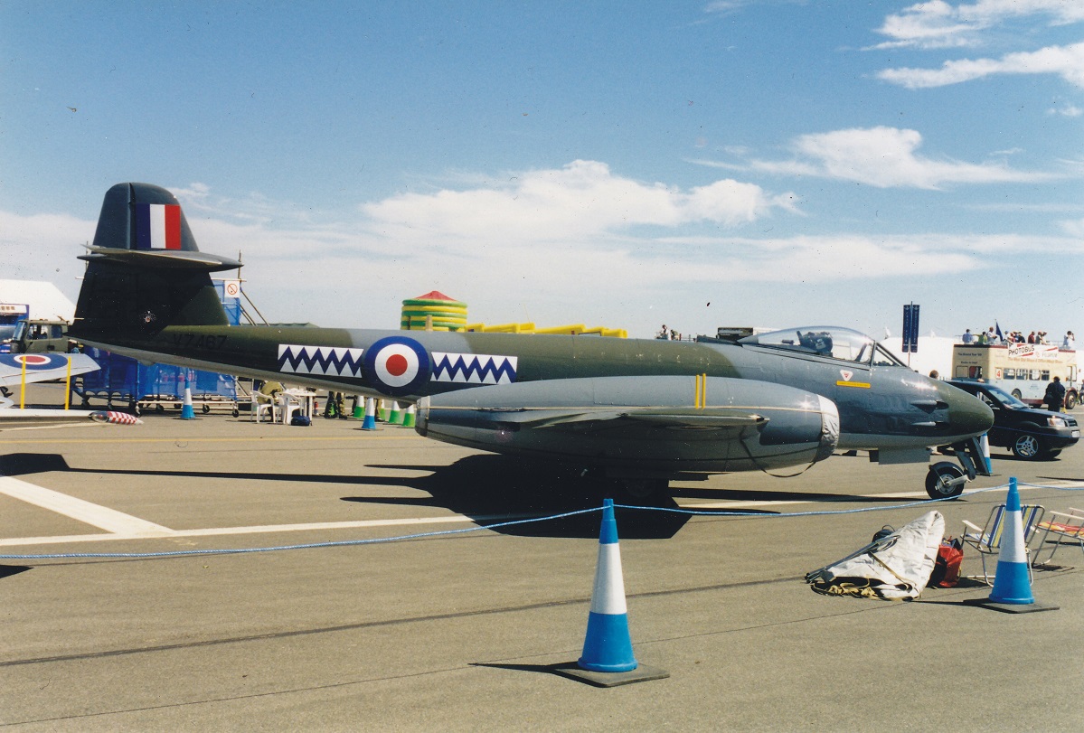 Gloster Meteor F.8 VZ467 in de kleuren van het No 615 (County of Surrey) Squadron RAuxAF.