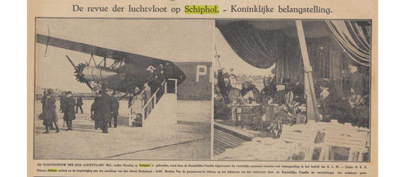 Deze krantenfoto's geven antwoord op mijn vragen. Ze zijn uit 'De Tijd' van 30 September 1931 van een 'vlootschouw' op Schiphol.