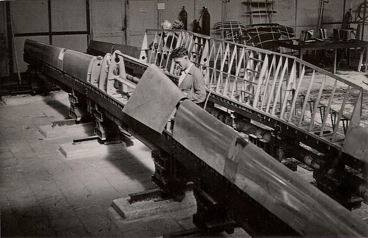 De vleugels worden op een interessante manier gebouwd (althans, lijkt me). De voorligger met vleugelneus en achterligger met achterrand apart, die later waarschijnlijk worden verbonden met elkaar.