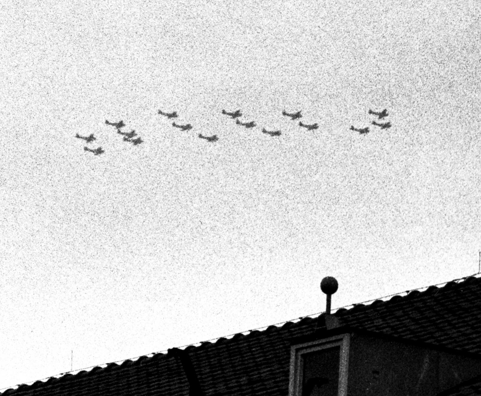 Geen vier, geen twaalf, maar zéstien S Elven, globaal dezelfde kant op vliegend.