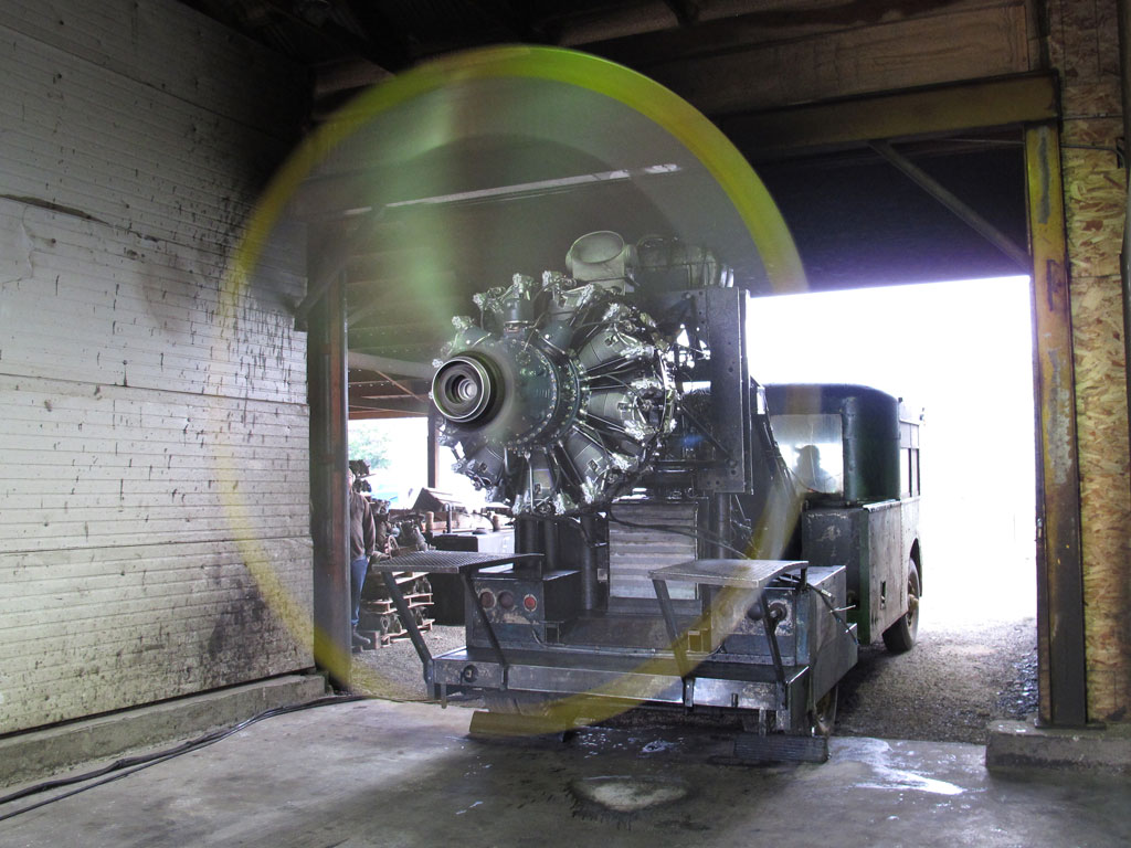 De R-2800, ook geen kleine jongen, op een proefbank USA Reno-style.