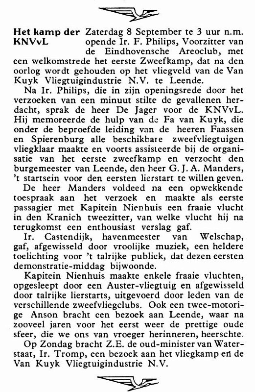 Vliegwereld was er als de kippen bij, n.l. al op 15 sept' 1945, met het vermelden van de van Kuyk vliegtuigen.
