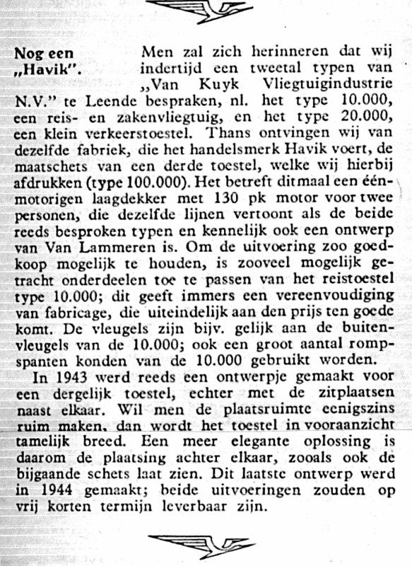 Vier jaargangen -en evenzoveel uren- verder, vond ik eindelijk iets over de van Kuyk "Havik", in de 15 april '46 uitgave.