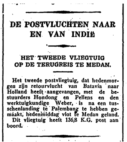 Op de terugweg van Batavia werd gestart op 31 oktober 1930. In ‘Het Vaderland’ van diezelfde dag stond het volgende bericht: