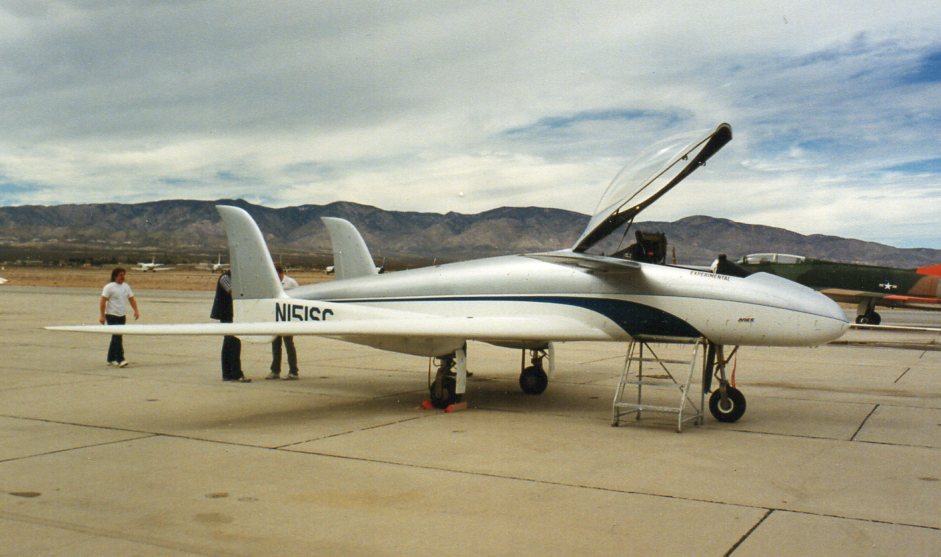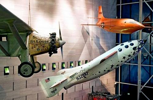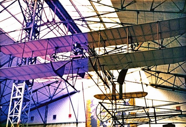 Vervreemd dolend tussen een X-1, een X-15, een plastic ruimtehopper en een satelliet.