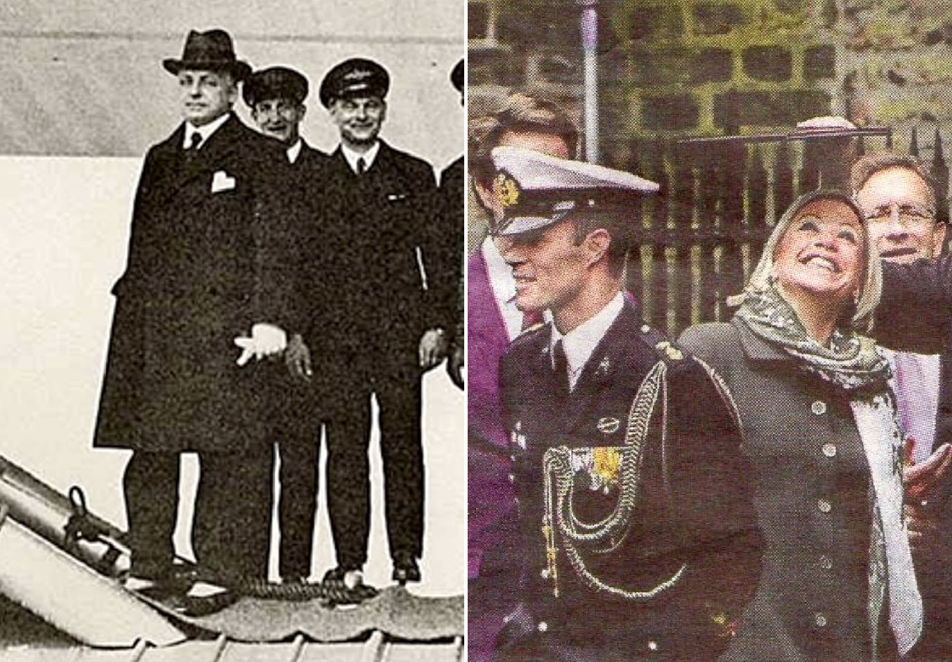 Na de landing kwamen al gauw de autoriteiten om zich te laten fotograferen op een van de stompen van het vliegtuig (Zie de foto die Tracker instuurde op 29-10-2015 bij de topic ‘ Fokker watervliegtuigen in de grote oorlog’.) Op deze foto dus helemaal links met gleufhoed, witte handschoenen en slobkousen de toenmalige minister van defensie Deckers. Omdat ik van contrast houd heb ik de foto uitvergroot en geplaatst naast die van de huidige minister van Defensie de charmante en modieuze Jeanine Hennis Plasschaert :