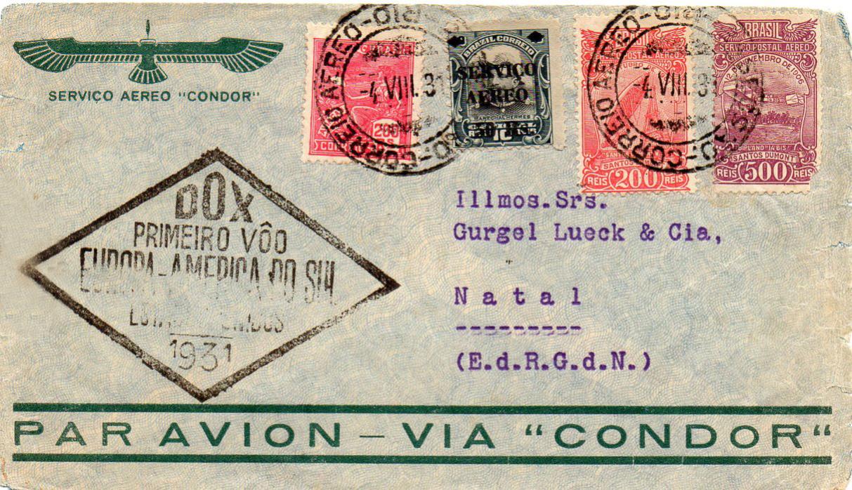 De brief is op 4.VIII.31 in Rio afgestempeld en het ontvangststempel toont Rio Grande Norte en dat is het district waar Natal ligt. Van daar vliegt men naar het noorden. Dat zien we dan wel weer in het volgende deel. JanJr.