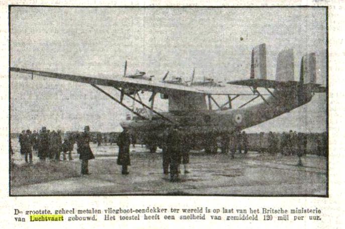 In de Leeuwarder Courant van die verhaalde men over de grootste Engelse metalen vliegboot. (Wie weet wat voor een model het is?)