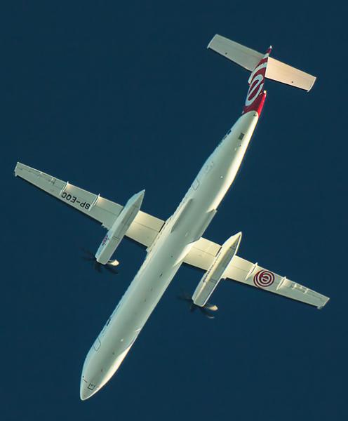 Een subsidiary van LOT is Eurolot, met Dash 8's, en dus rechte vleugels.