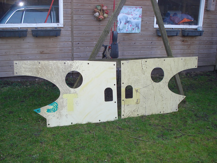 Bijgaande nog enige foto's van mijn werk. Enige tijd geleden de zij platen van het stuurhuis laten uitsnijden, wederom gebruik gemaakt van de aluminium platen van de gesloopte srv wagen. Nadat de platen waren uitgesneden moet er nog een ronding in gemaakt worden. Dat heb ik gedaan met een oude melkbus op een stoeprand en een houten balk. Van de week ook een aantal plaatjes bemachtigd die op de zijplaten geklonken moeten worden om de platen op het buizenframe van het stuurhuis te kunnen bevestigen.