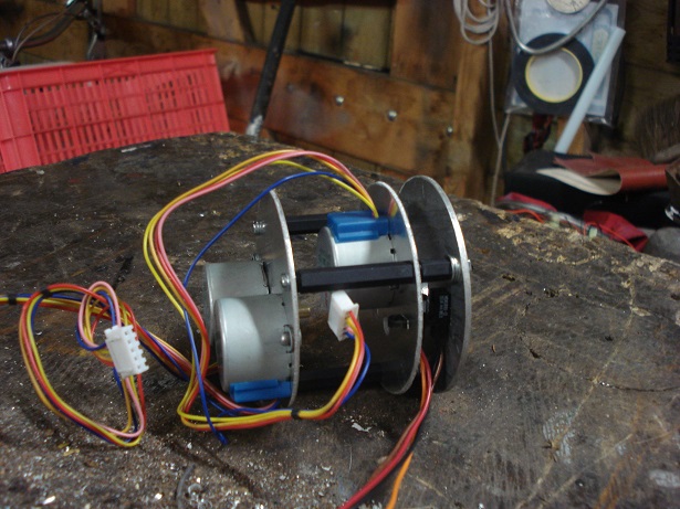 Hieronder: de stappen motortjes op het nieuwe binnen frame.