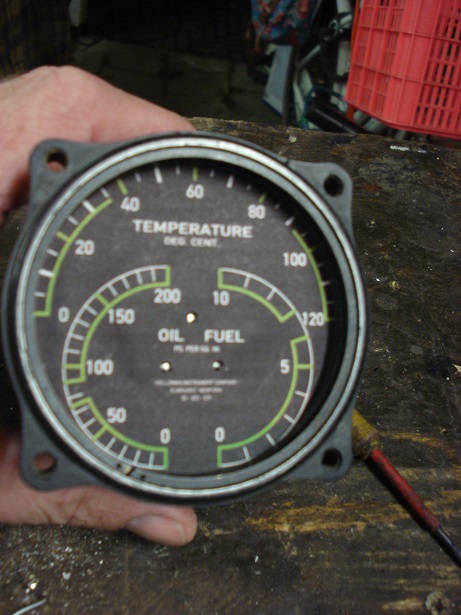 Hieronder: helaas minder scherpe foto waarop de lichtsluis te zien is welke het nulpunt moet registreren van de wijzer van de smeerolie temperatuur.