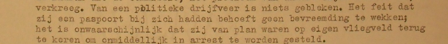 De kwestie van de paspoorten kan in dit tijdverschil echter niet meegespeeld hebben ( rapport van de Marechaussee is helaas niet opgenomen in het dossier van deze zaak in het Nationaal Archief ) maar het maakt wel duidelijk dat er bepaalde dingen onder de pet gehouden worden.