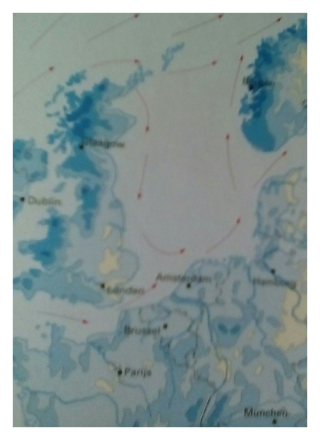 Het overgrote deel van de golfstroom verplaats zich langs de westkust van Engeland en Ierland en zal zich om Schotland heen, als gevolg van de "Coreoliskrachten" zich afbuigen naar de veel ruimere Noordzee en zich in een cirkelvormige baan, maar tegen de wijzers van de klok zich verplaatsen langs de oostkust van Engeland en via Belgi๋ en Nederland zich weer verplaatsen in noordelijke richting langs Denemarken naar de westkust van Noorwegen.