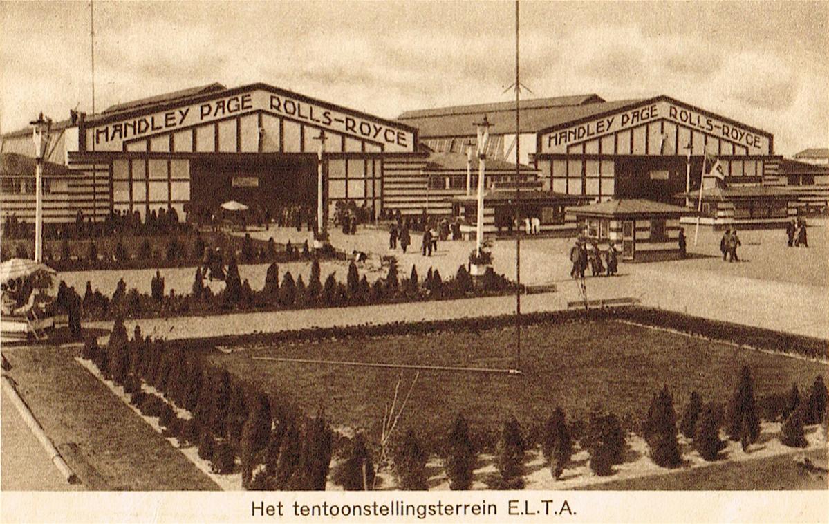 Tentoonstellingsterrein E.L.T.A. met prominente aanwezigheid van Handley Page en Rolls-Royce.