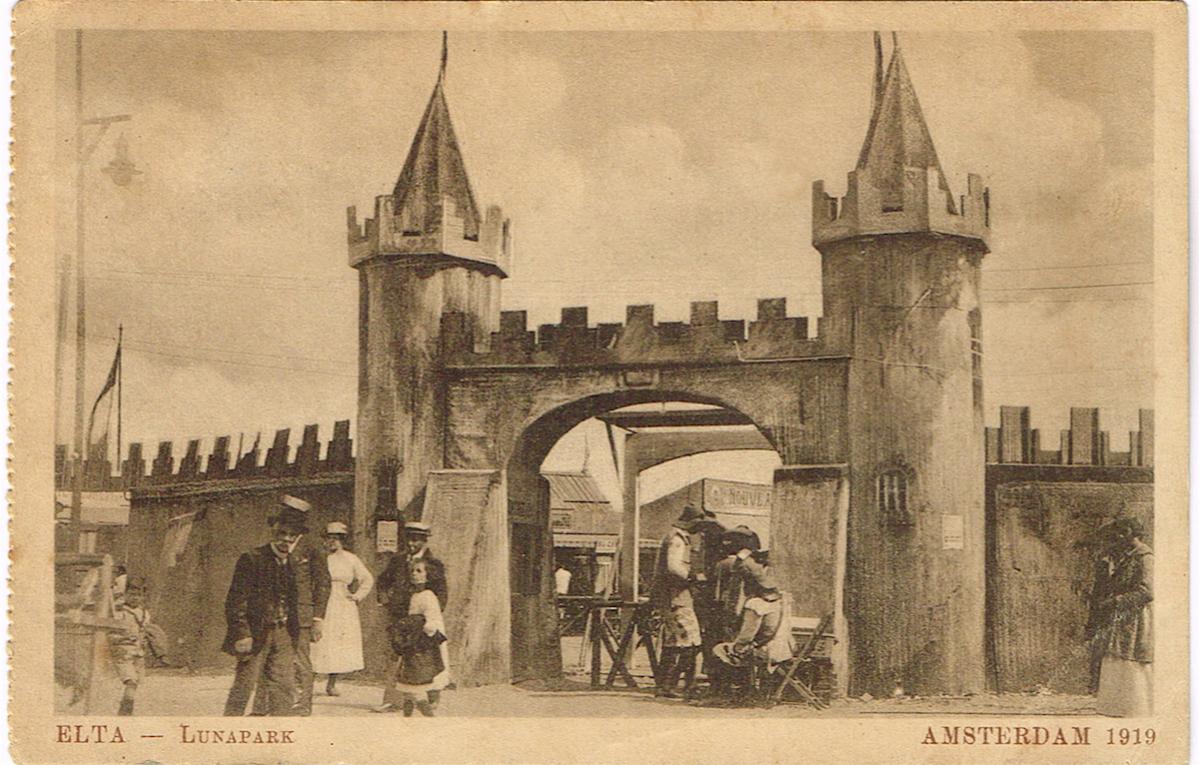 E.L.T.A. Lunapark – Amsterdam 1919. Links is door de perforatie zichtbaar dat dit een afscheurbare kaart was.