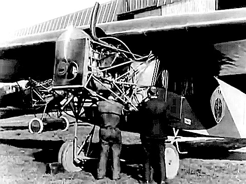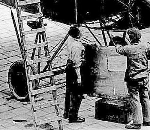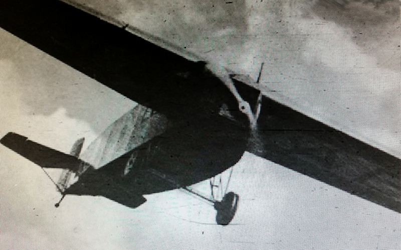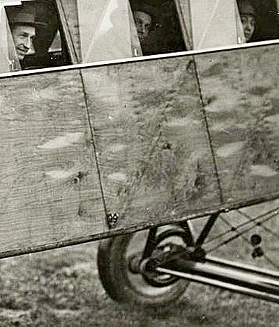 Op de prentbriefkaart blijven er dan een soort peren met steeltjes over, maar hier onder is te zien dat het het servoroer is dat de streep op de lage roundelkant veroorzaakt.