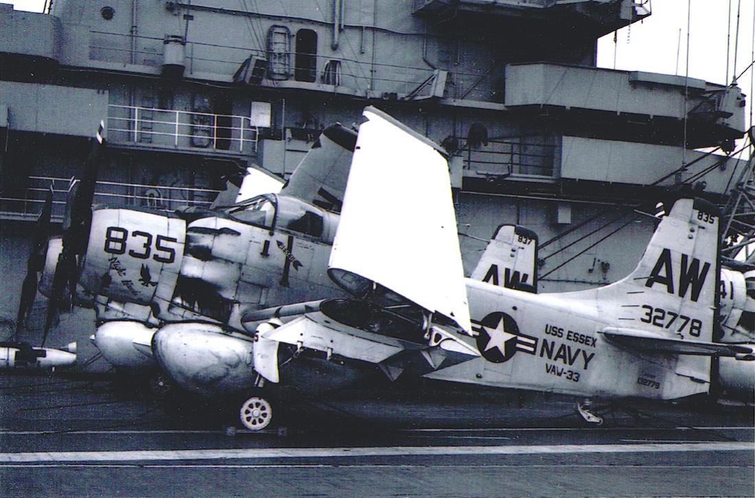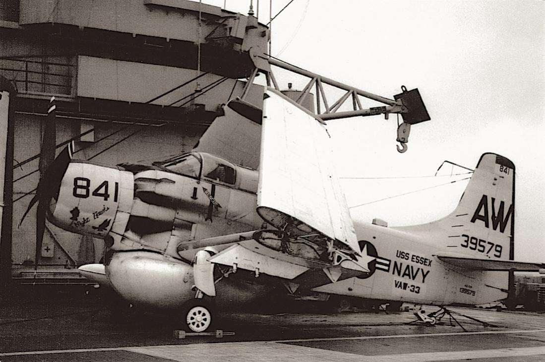 139579. Douglas AD-5W (EA-1E) on USS Essex (1961). US Navy, VAW-33 "Nighthawks" (Carrier Airborne Early Warning Squadron 33 [CARAEWRON 33]).