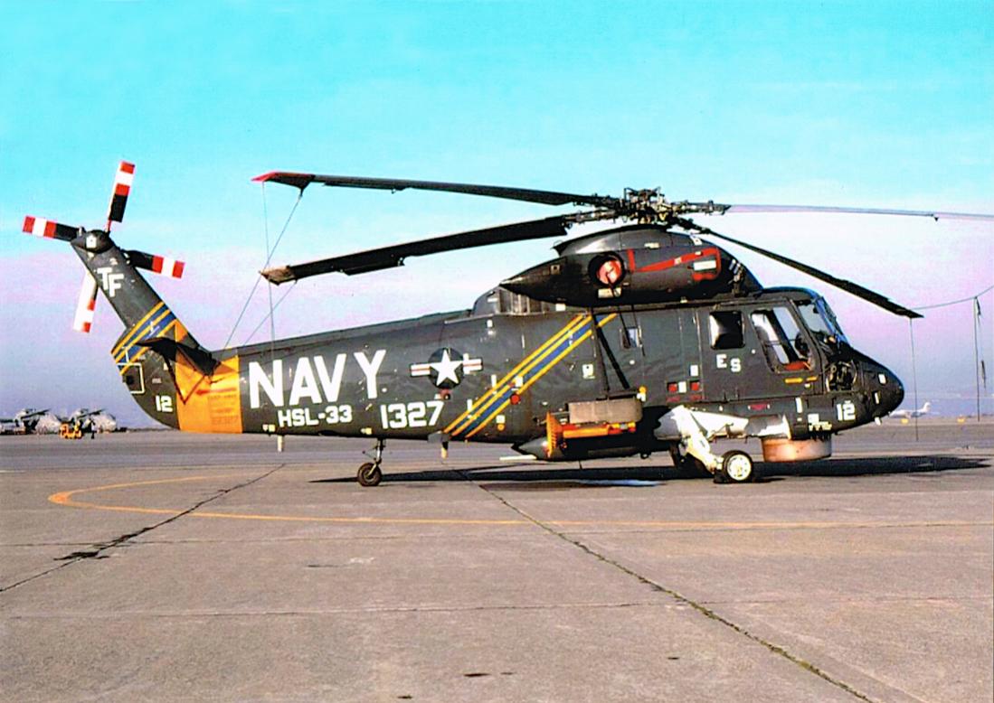Kaman UH-2B Seasprite. Designation changed to SH-2F Seasprite. 151327 (MSN 164) with HSL-33 Det 5 crashed into Indian Ocean on takeoff from USS Leftwich Aug 18, 1984. Two killed.