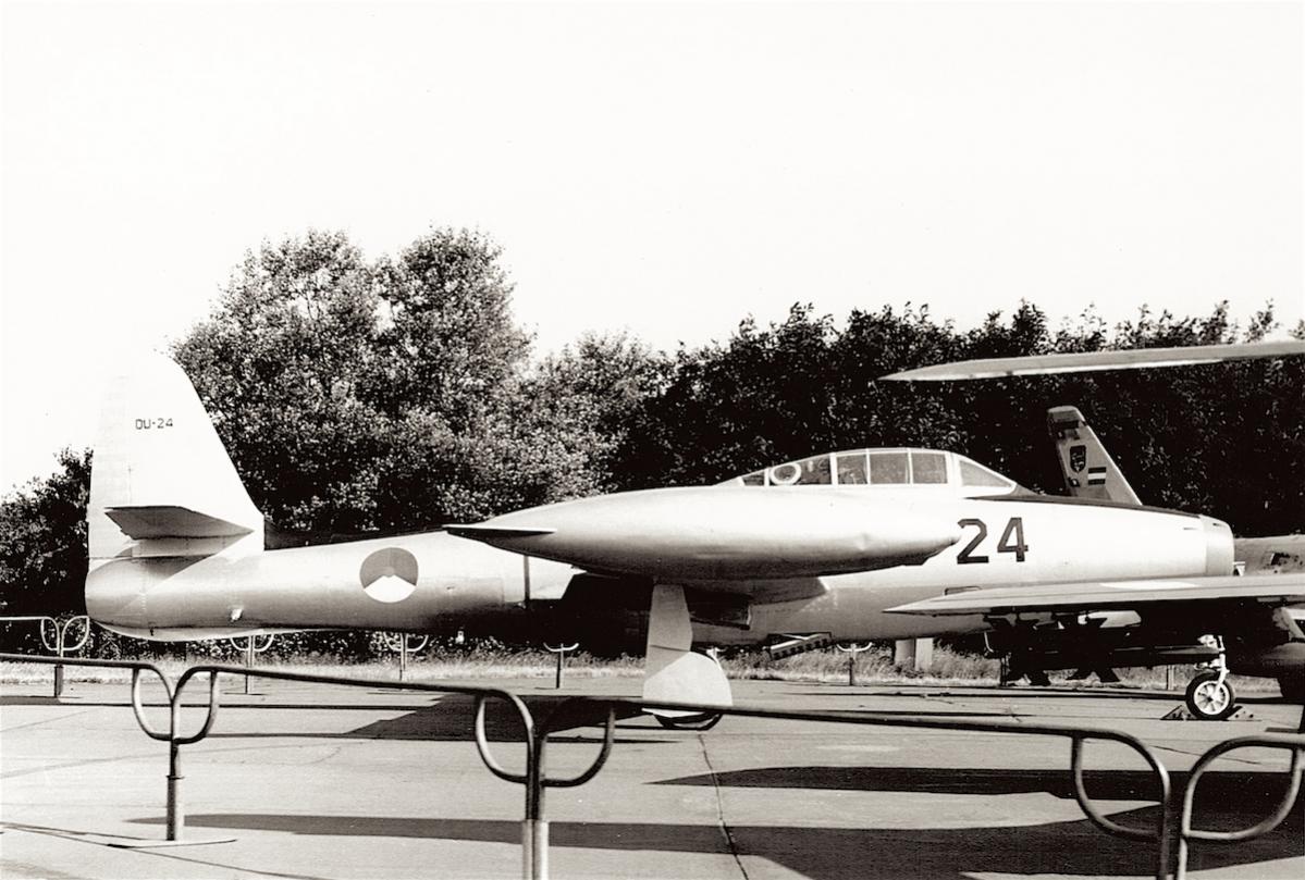 'DU-24'. Republic F-84G Thunderjet. Vliegveld Deelen, juni 1973.