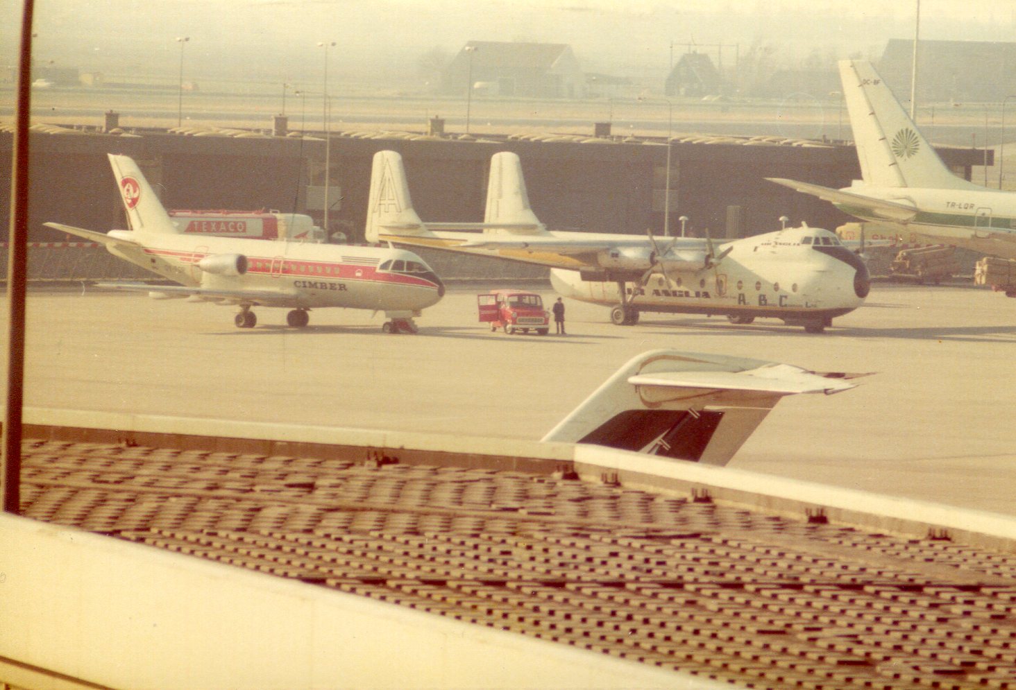 Prachtig... een Cimber VFW-Fokker 614, een Air Bridge Cargo AW.650 Argosy en een Affretair DC-8.