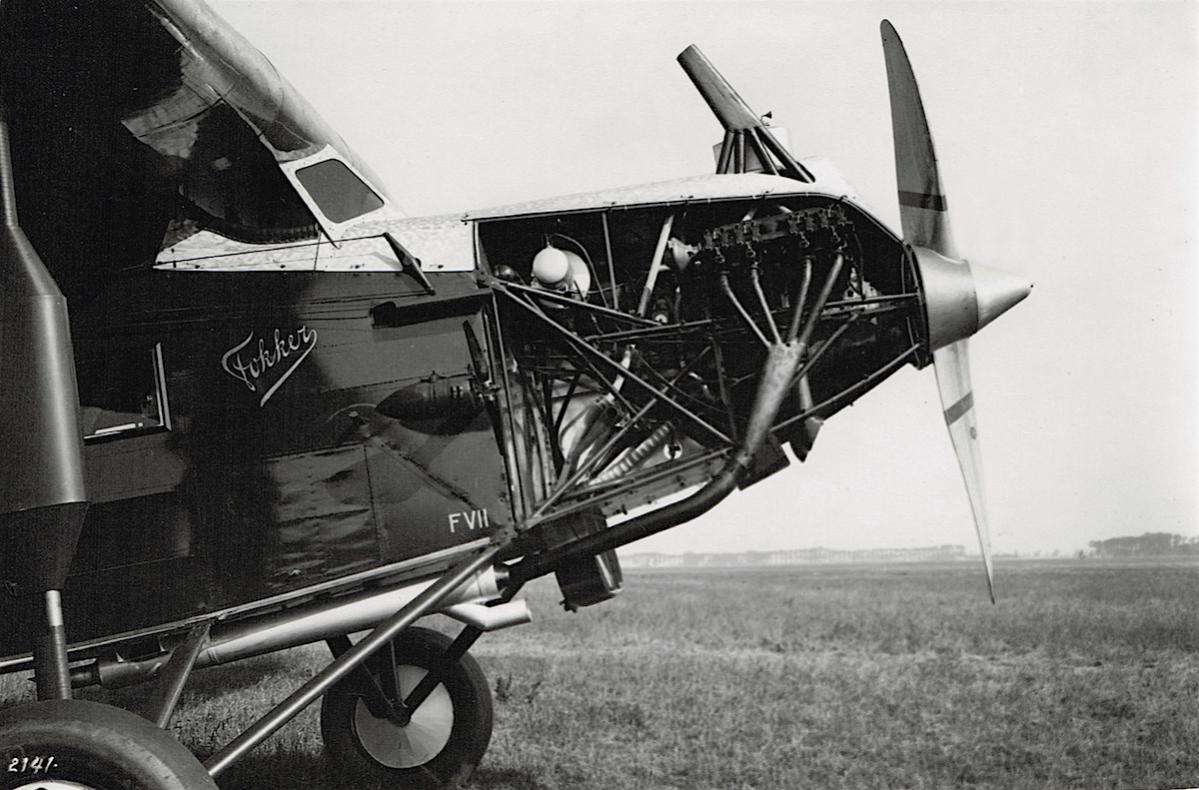 Deze F.Vii is uitgerust met een motor van Napier, met 3 rijen cylinders vandaar 3 uitlaten.