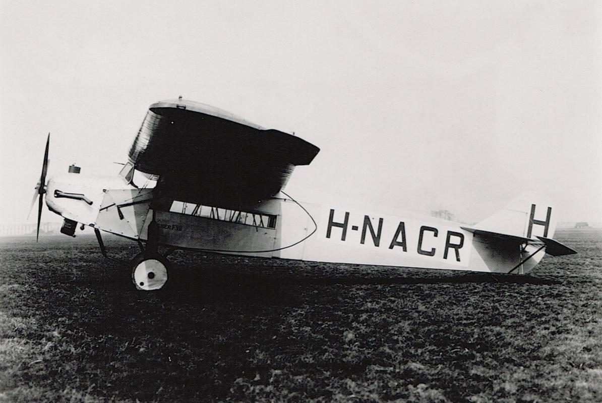 'H-NACR' (H-N FOKKER / H-NACR / PH-ACR / VH-UQF). Fokker F.VII. In dienst KLM 28.07.1925, uit dienst KLM 12.05.1931.
