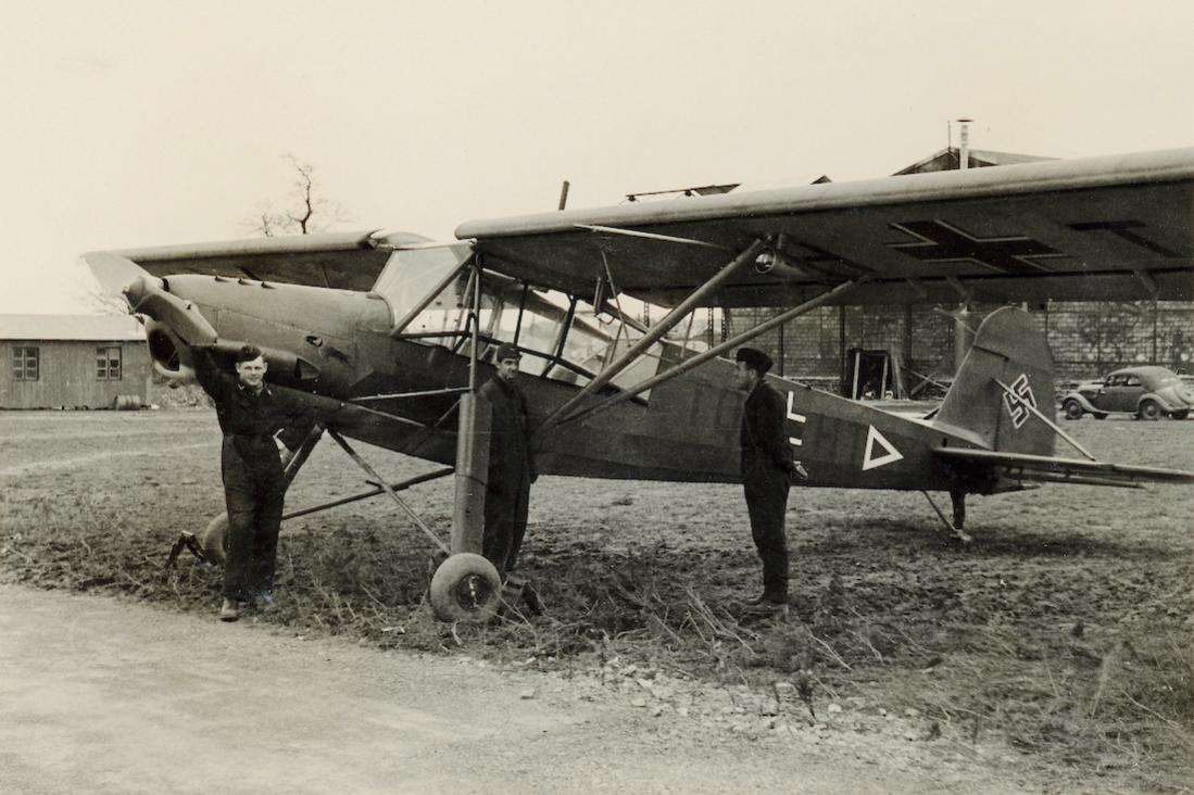 Het toestel op de achtergrond is een Siebel Fh 104 "Hallore".