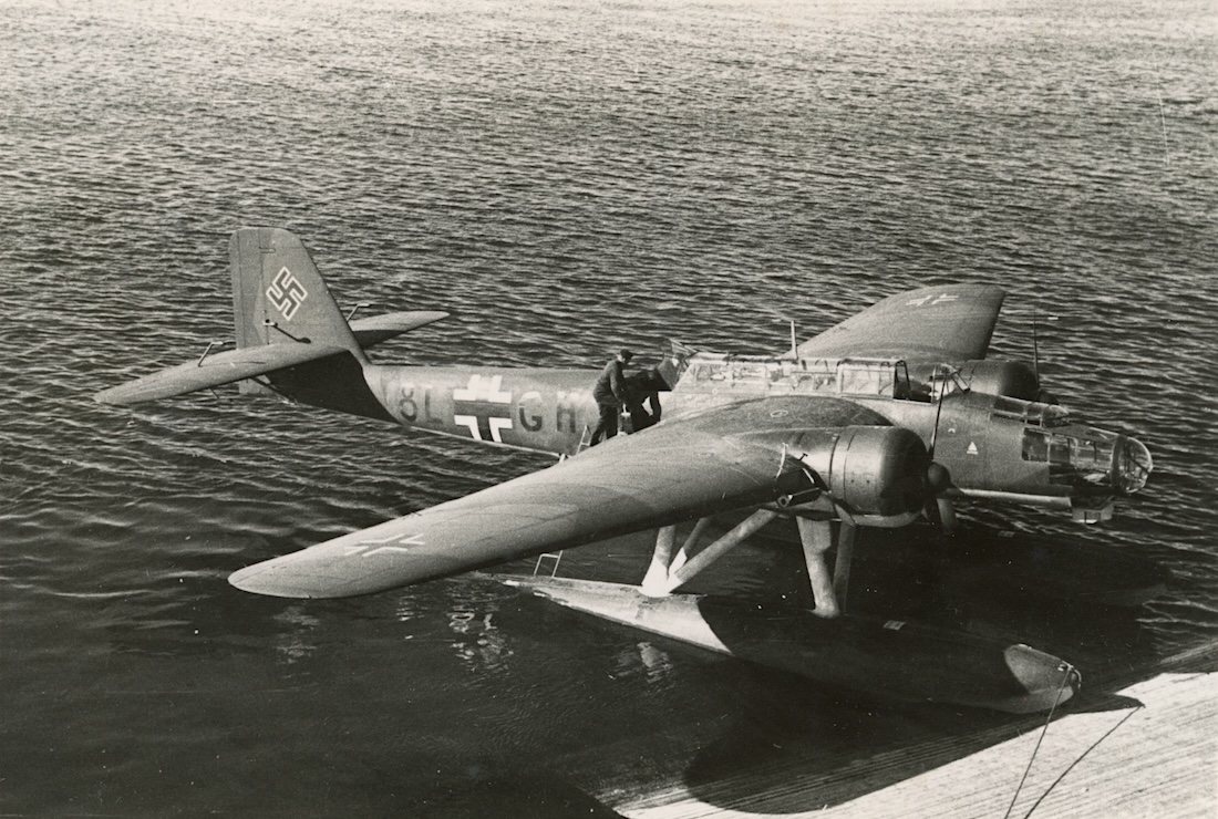 Op basis van het ontbreken van een staartvlak in het midden en wel iets wat lijkt op een staart vlak onder de linkervleugel, lijkt het mij toch een Dornier.