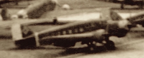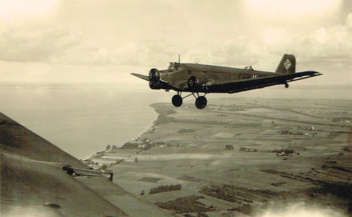 Foto 243. Junkers Ju 52 in formatie. De rugschutter maakt een tamelijk schlemielige indruk achter zijn windschermpje.
