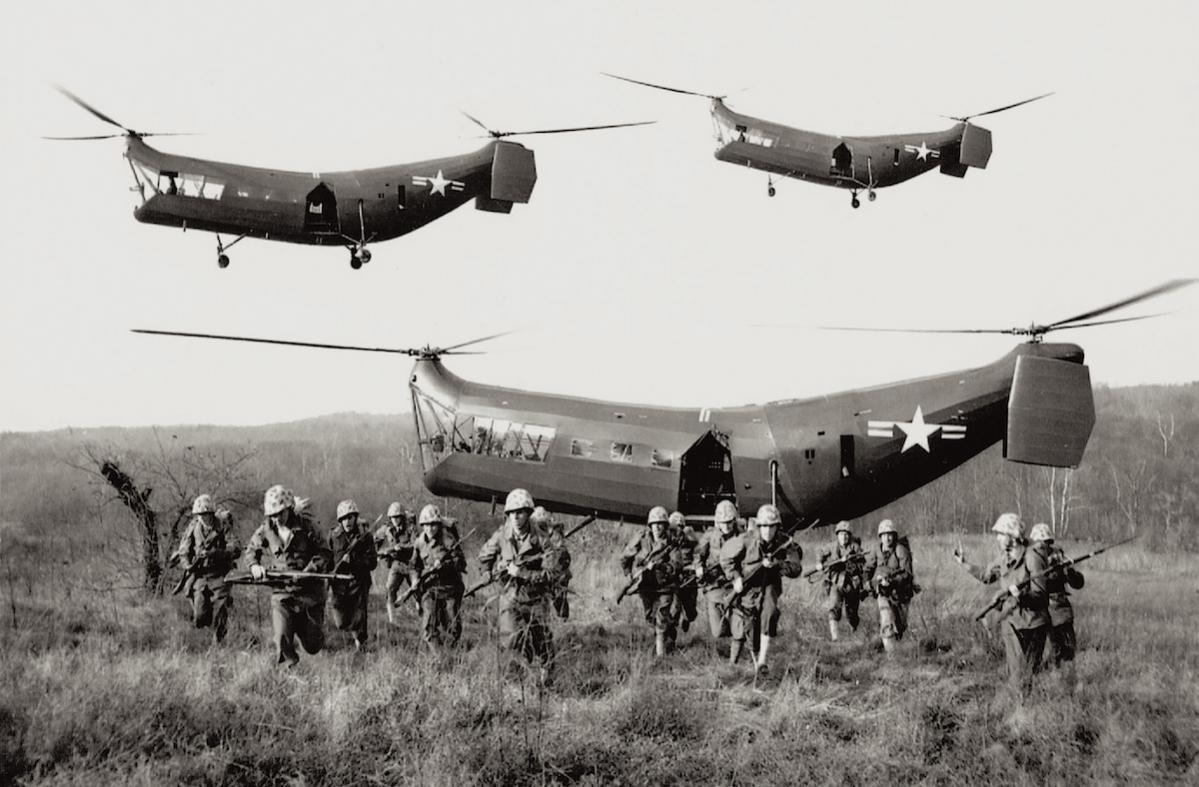 Deze HRP-1 helicopters demonstreren landingstechnieken op Quantico (Virginia) in november 1948.