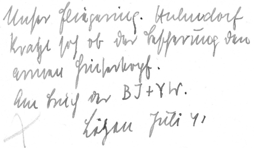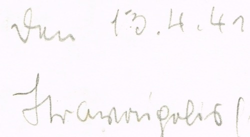 Het probleem met het geschreven duits is het feit dat het "Deutsche Normalschrift" pas in 1941 werd ingevoerd. De foto's die ik van de periode 1934-1945 koop zijn allen beschreven door mensen die schreven in "Sütterlinschrift". Dat is voor ons bijna niet te lezen, zie daarvoor ook bij foto 82. Je hebt dan een voorbeeld er naast nodig en letter voor letter trachten uit te vinden welke het is, dat kost veel te veel tijd dus laat maar in mijn geval. Boeken van voor 1941 werden bijna allen in Fraktur gedrukt en dat kan ook bijna niemand in Duitsland zelf meer lezen. Het lezen kost mij in ieder geval veel tijd. Het is wel jammer want er gaat behoorlijk wat info verloren bij de geschreven teksten. Beide, het geschrevene en het gedrukte, werd verboden in 1941. Maar ja niet iedereen verandert op bevel van de schrijfwijze die je in je jeugd hebt geleerd.