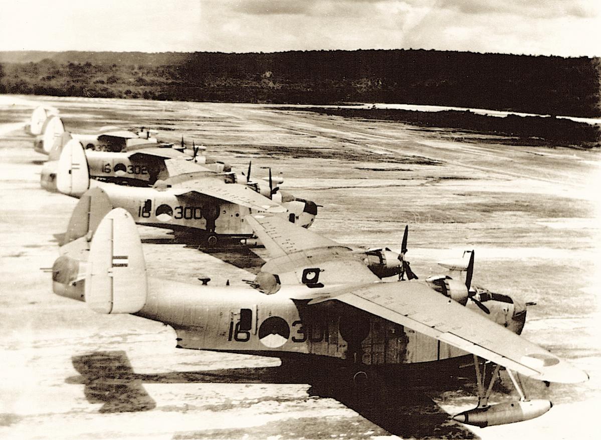 Rij Martin PBM-5A Mariners (16-301, -300, -302 en -309) in NNG. Foto niet helemaal scherp.