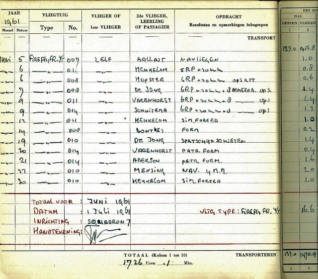 Ik scan de logboeken van Jan en kwam Peters naam tegen op o.a. 9 juni '61.