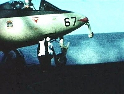 De 67 had wel eens een probleem met het neuswiel bij het oplijnen voor de catapult.