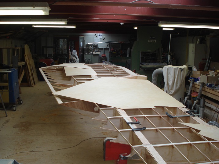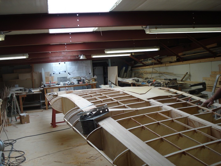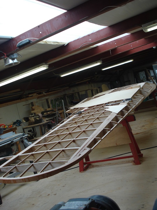 De onderkant van de vleugel is geheel bedekt met hout, op het moment wacht Jack op de levering van hout voor de bovenkant. Verder heeft hij een begin gemaakt met het monteren van het mechanisme om de vleugelklep te kunnen bedienen. Daarnaast is hij nog bezig met de motor.
