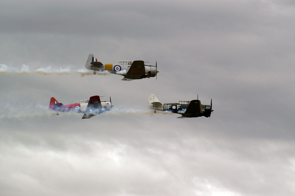 Dit is de G-BGPB, een CCF Harvard-IV in de kleuren van de Portugese Luchtmacht, maar geplaat op Duxford: