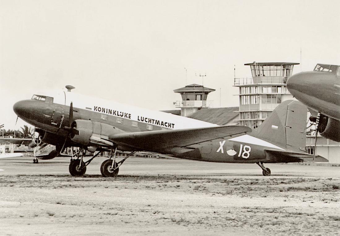 'X-18'. Douglas C-47B Dakota in NNG. Links op de achtergrond nog een Twin Pioneer van de Kroonduif.