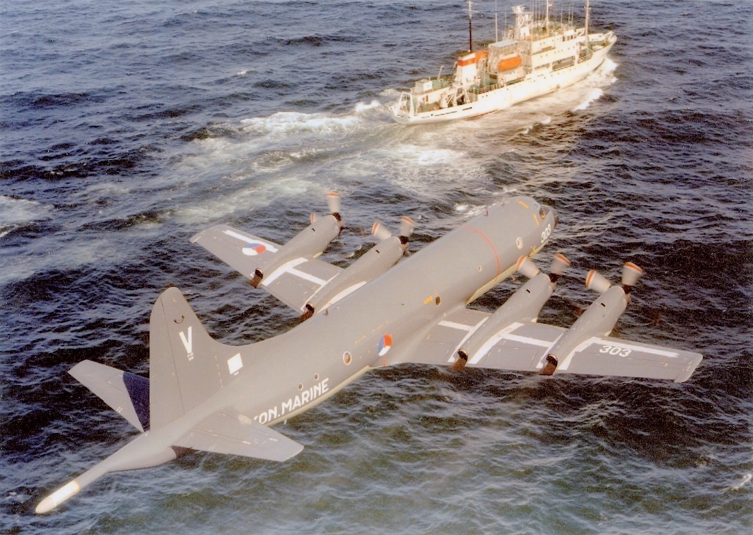 de P-3 boven een Russische "trawler". Nog nooit een vissersboot met zoveel antennes gezien. ;)