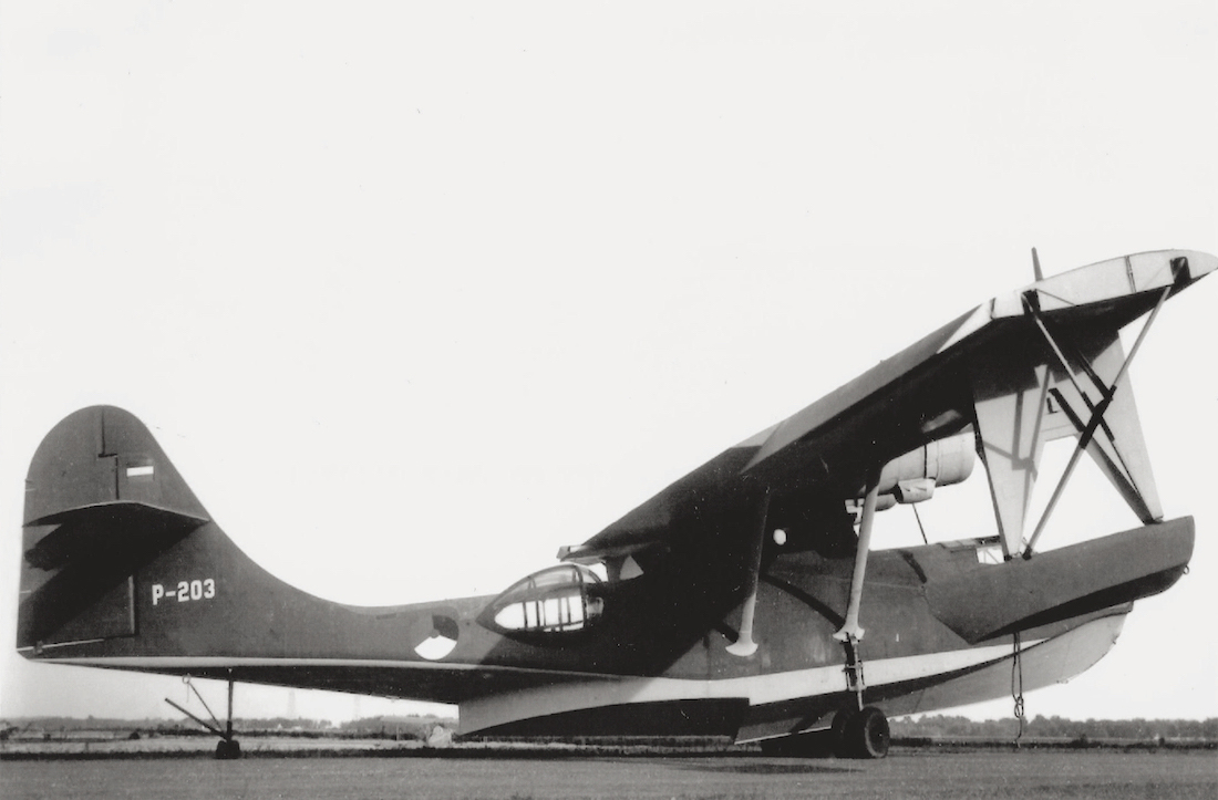 'P-203' (ex JX219). Consolidated PBY-5 Catalina IVa. In dienst november 1946 en in oktober 1951 gesloopt te Biak.