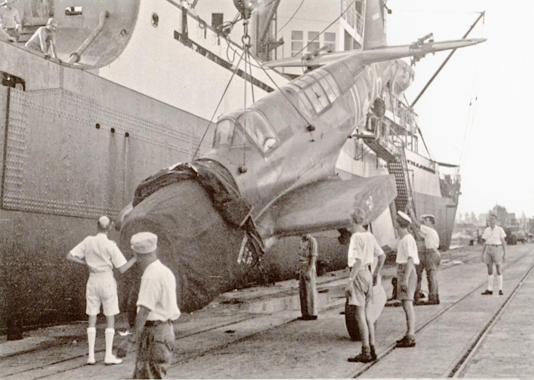 De Firefly wordt hier ingescheept voor de terugreis naar Nederland. De heenreis was gemaakt met Hr.Ms. Karel Doorman (I). De toestellen zijn vanaf het schip naar Kemajoran gevlogen en vandaar naar Morokrembangan bij Soerabaja.