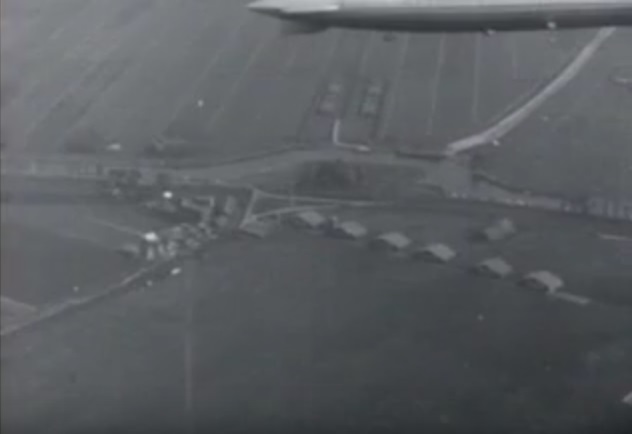 In 1940 was de witte cirkel op de vliegweide al omringd door betonnen banen, zoals op deze foto's: