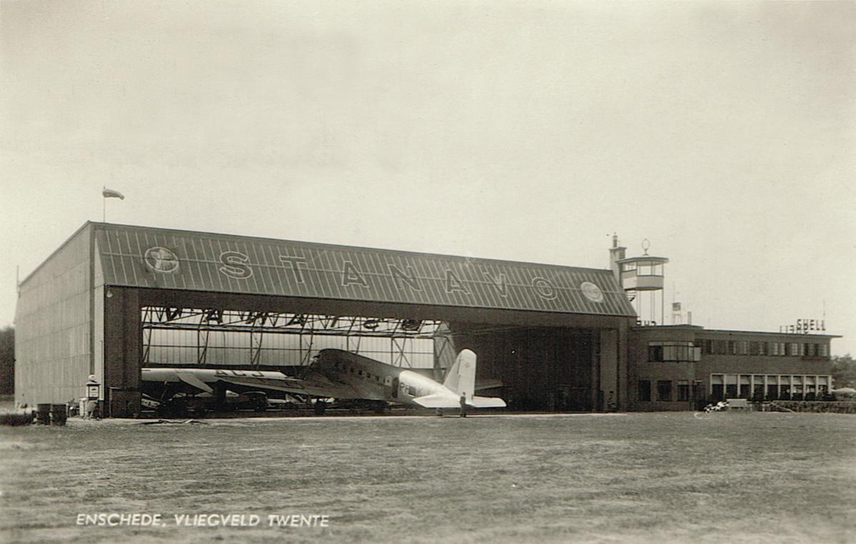 Hangar op Twente met KLM DC-2 PH-AKJ "Jan van Gent" en Fokker F.VII PH-ACJ.