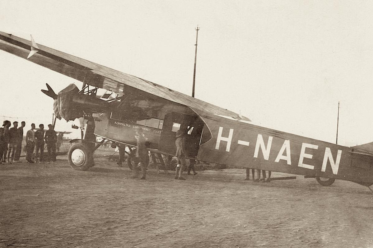 H-NAEN (later PH-AEN) ergens in de tropen gezien de tropenhelm.