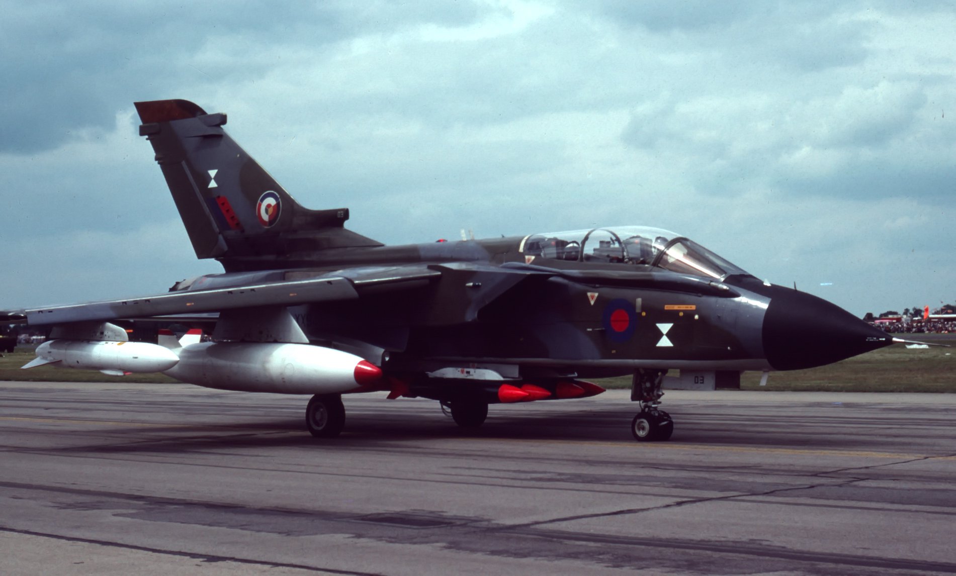 De Tornado had ook zo'n roundel maar deze werd op 3 manieren geplaats afhankelijk van welk land het prototype was. OF rood boven, voor Italie, of zwart boven voor Duitsland of blauw boven voor de UK.