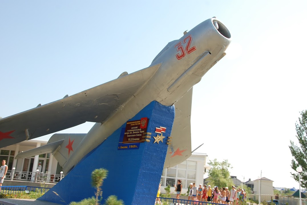 Wat ik voor deze foto kan terugvinden betreft het hier een monument ter nagedachtenis aan Joeri Gagarin. Joeri Gagarin kwam samen met een collega om in een MiG-15UTI.