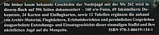 "Mosquitos über Berlin - Nachtjagd mit Messerschmitt Bf 109 und Me 262". Andreas Zapf. (VDM Heinz Nickel, 1. Auflage 2018). ISBN 978-3-86619-134-1.
