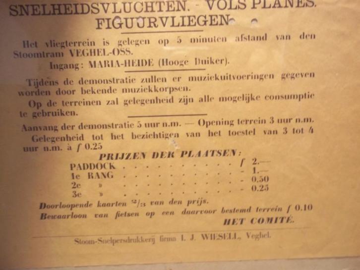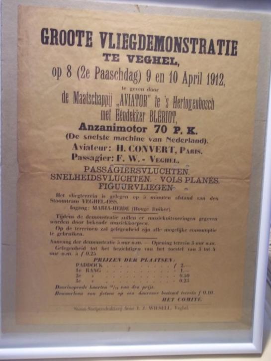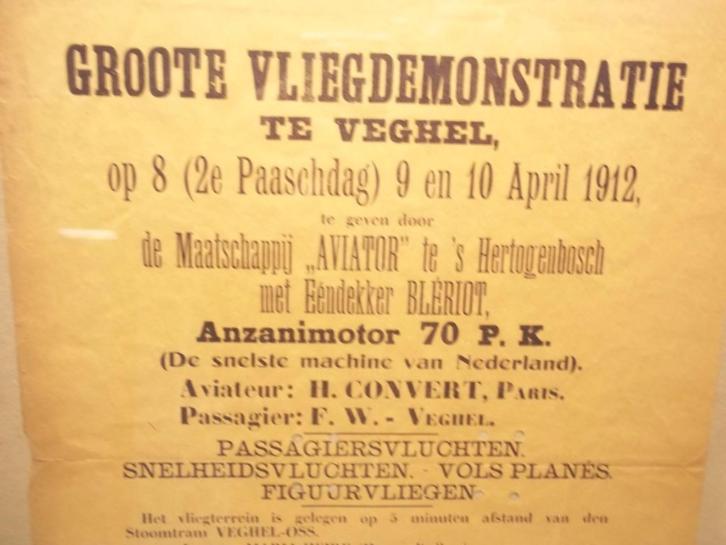 Plakkaat Vliegtuigdemonstratie 1912 Veghel, met foto serie.