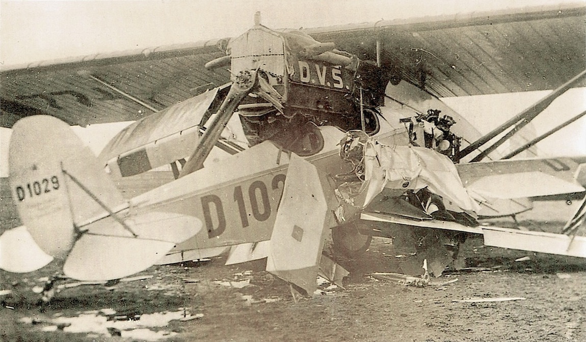 Ongelukje van de D-1029 met een toestel van de DVS. Dat toestel is volgens mij een Dornier Merkur met een BMW VI motor.